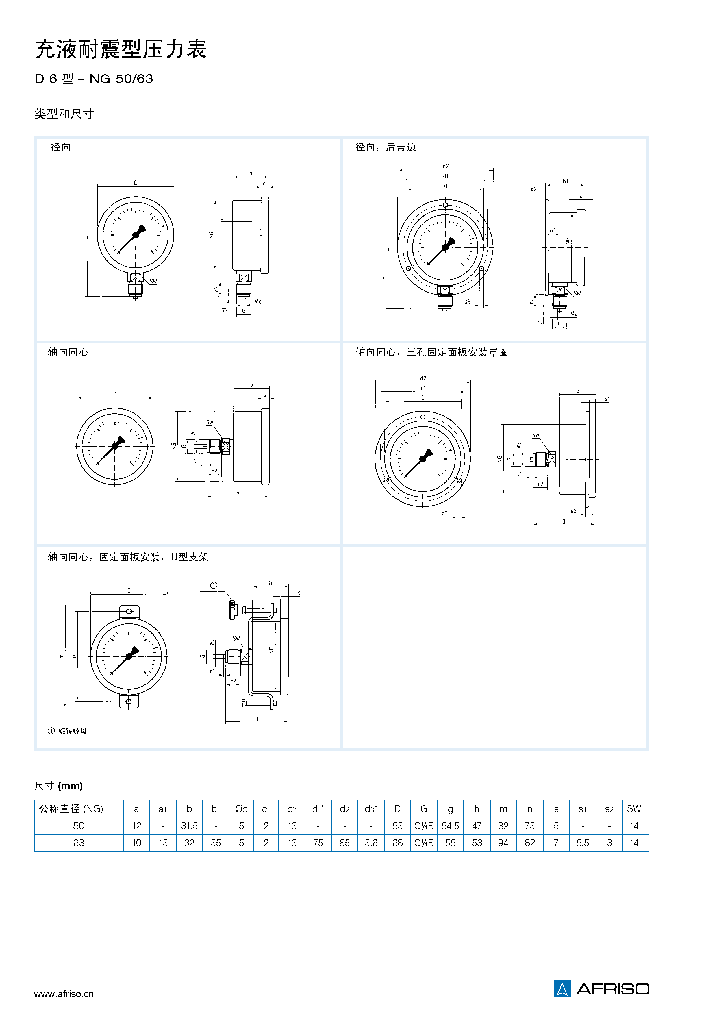 適用于測量低粘度、非結晶,且對銅合金無腐蝕作用的氣體或液體介質的壓力。用于高震動和動態壓力載荷波動較大的場所。 在測量氣體或蒸氣時,該儀表的使用必須符合EN837-2標準所規定的安全使用規范。 |
