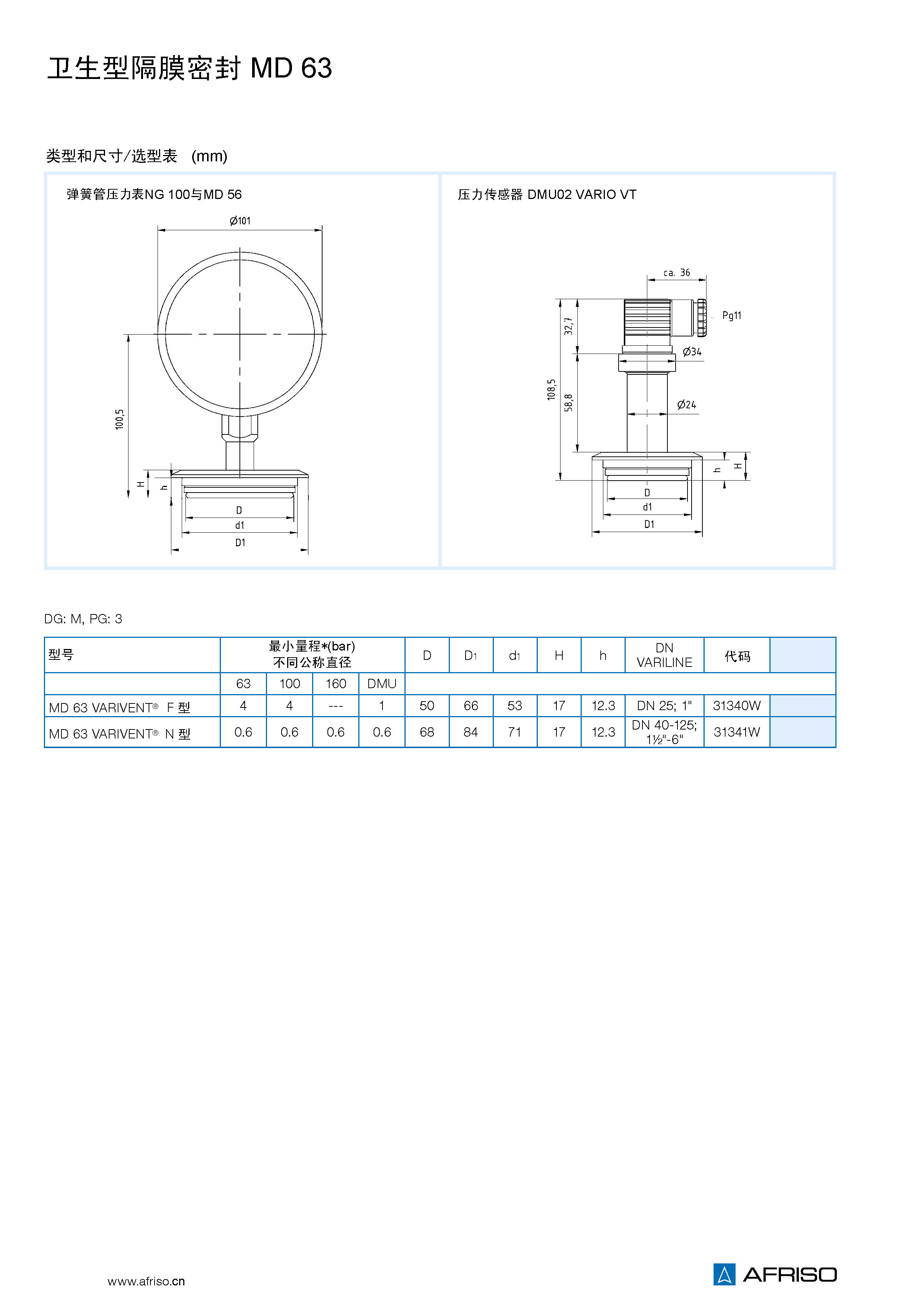 法蘭型隔膜密封MD 63用于無菌工藝過程中隔離管道或槽罐中的壓力測量和控制單元。