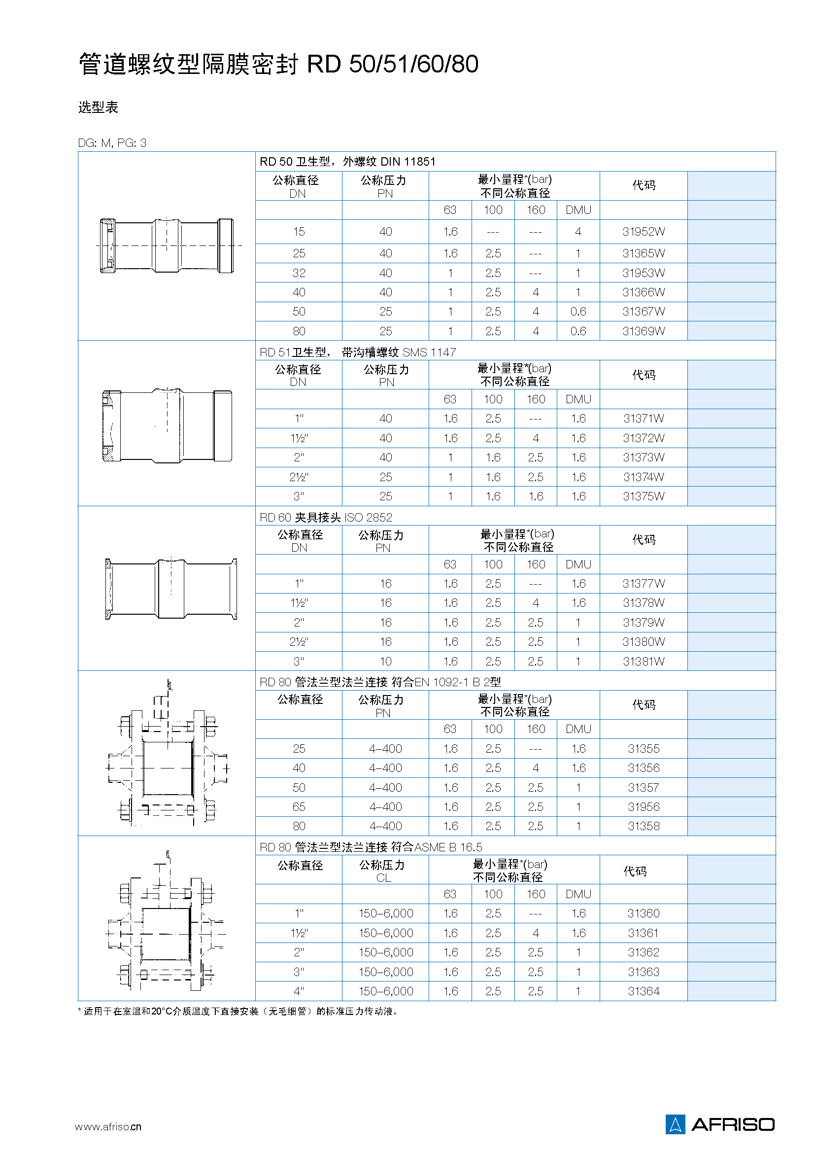 DN 25 到 DN 100