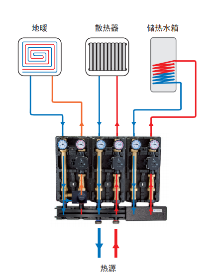 閥門帶溫度計、內置止回閥、高效節能循環泵、便于維護 |