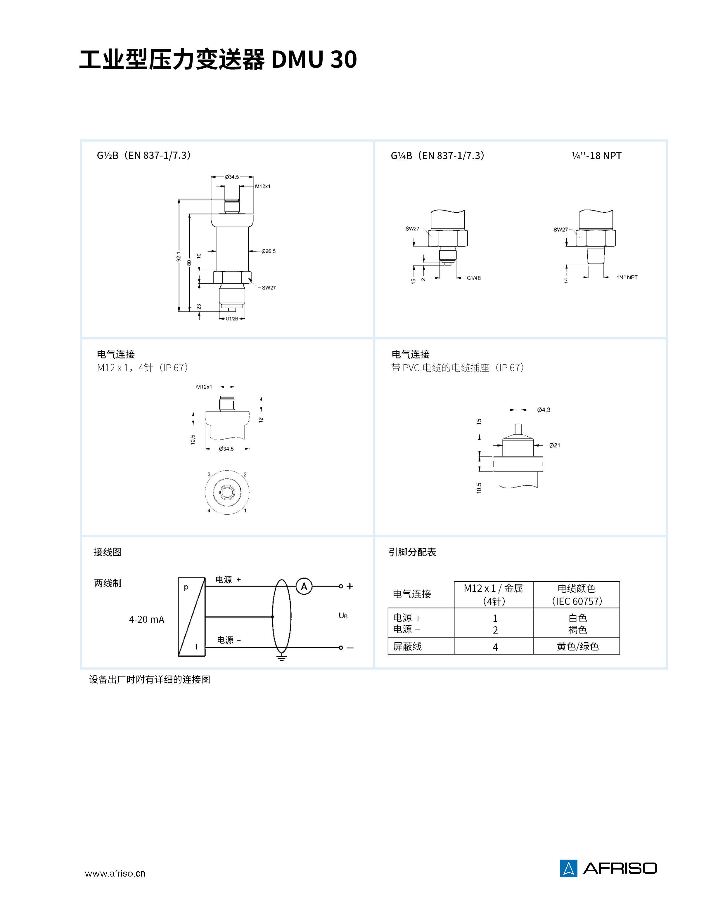 用于機械及工業領域的電子壓力檢測,亦適用于氫能行業。 |