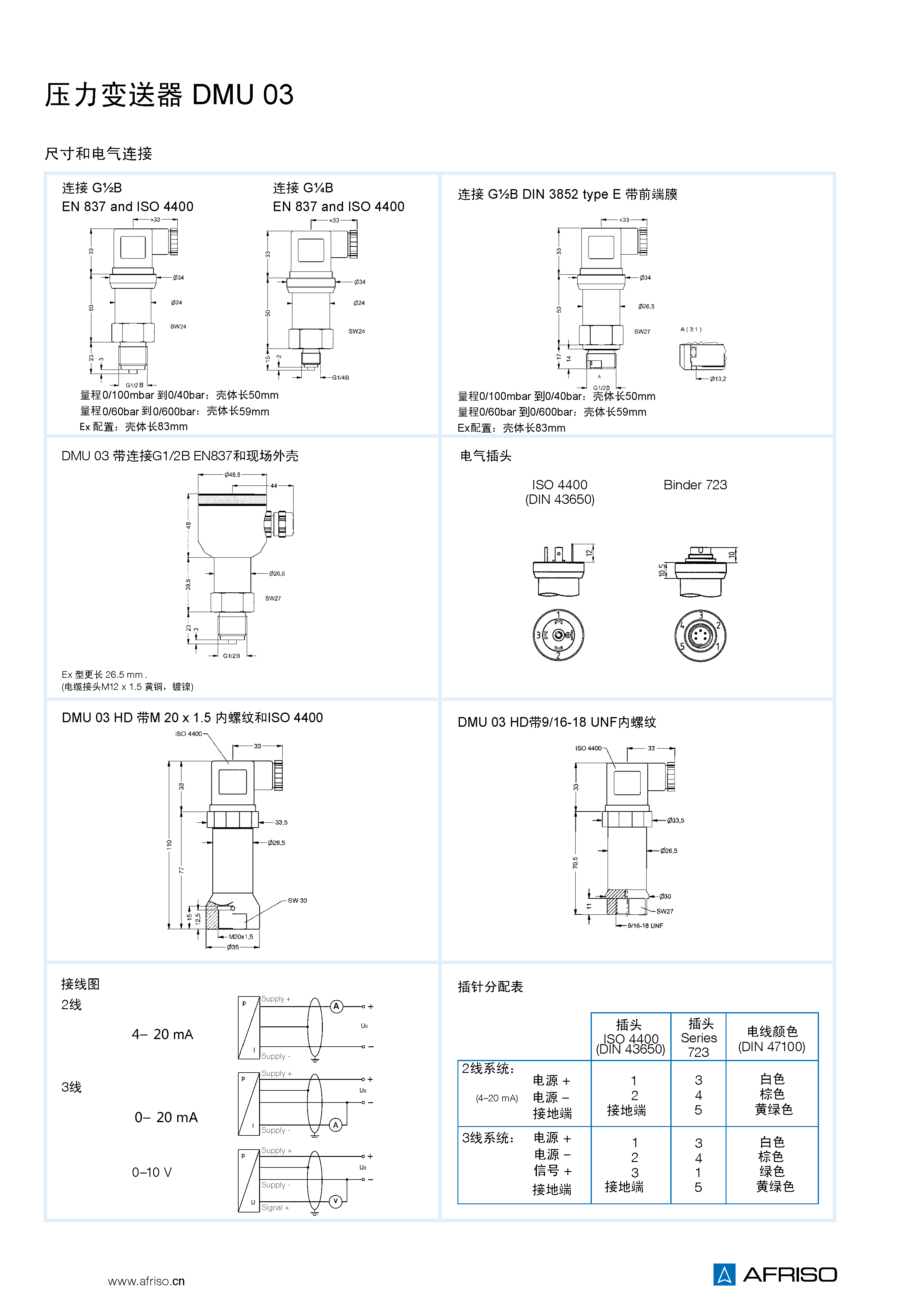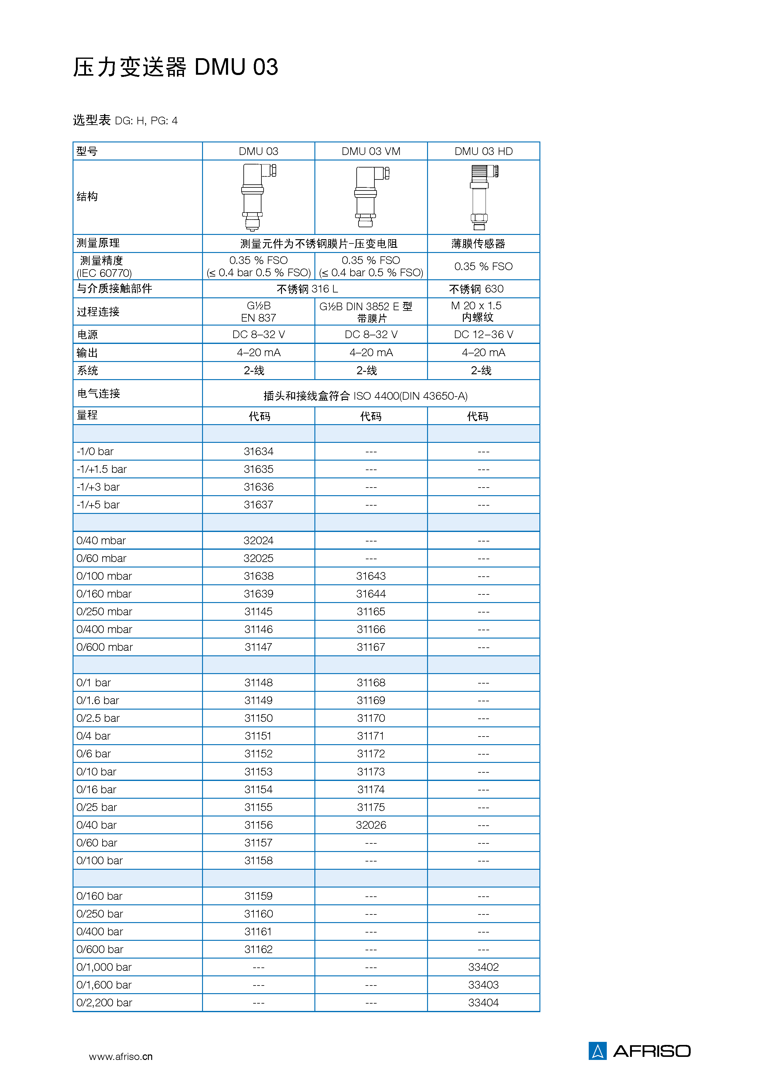 壓力變送器將物理壓力轉(zhuǎn)換成與壓力成正比的電信號(hào)。DMU 03 的測(cè)量單元是充油的壓電硅。DMU 03符合安全完整性等 級(jí)SIL 2 (IEC 61508/61511) |
