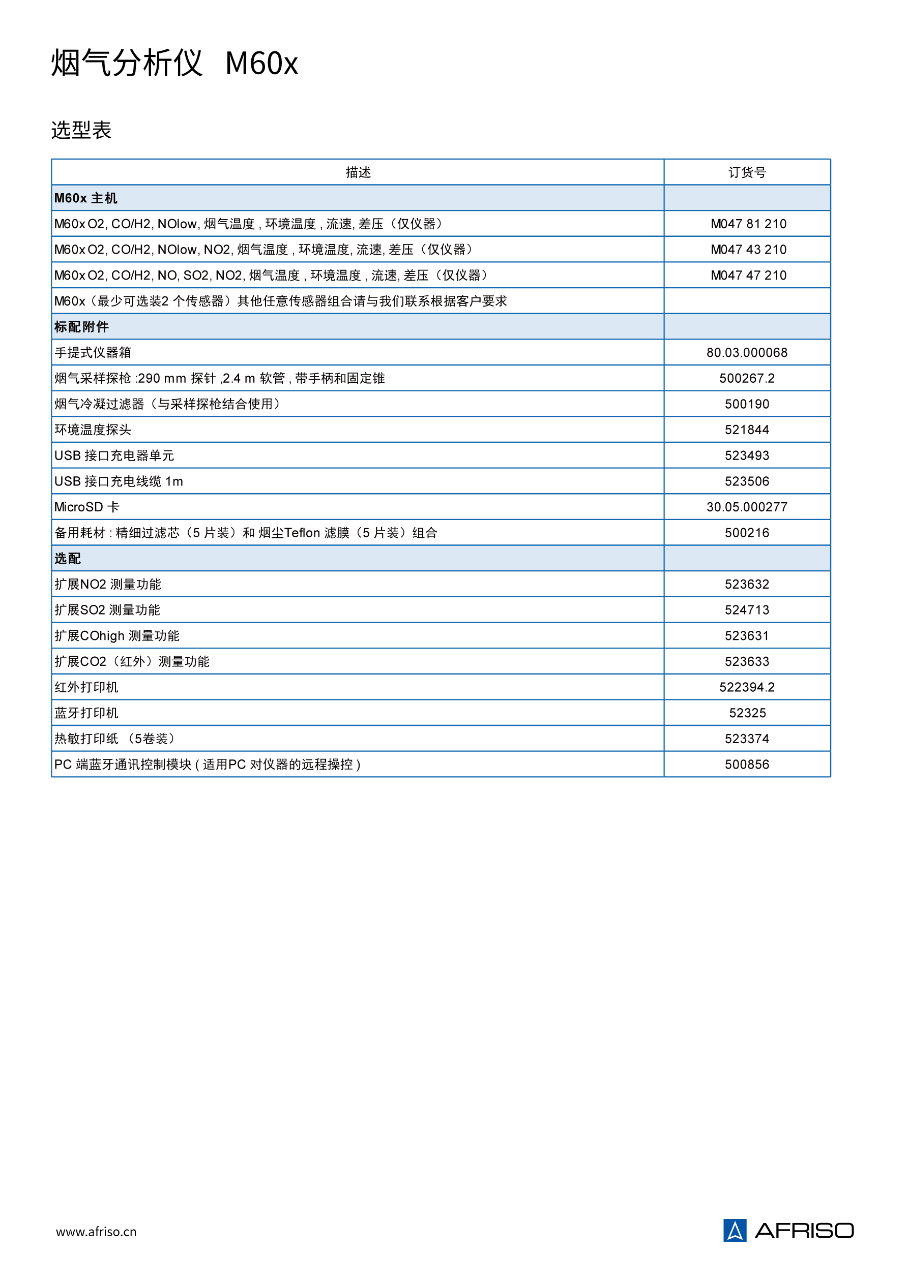 ? M60全新升級而來:新的操作按鍵設(shè)計和布局,實體按鍵,功能明確。傳感器精度和使用壽命更優(yōu); ? 標(biāo)配長壽命電化學(xué)傳感器,O2傳感器使用壽命≥5年; ? 標(biāo)配CO/H2高量程傳感器,實測量程達10000ppm,解決調(diào)試中因為超載造成的CO反復(fù)中毒問題; ? 內(nèi)置雙抽氣泵,帶新鮮空氣反吹功能。確保CO傳感器在煙氣濃度超載的狀態(tài)下不會損壞 ; ? 標(biāo)配測量數(shù)據(jù)自動記錄功能,記錄時間1~999s可調(diào); ? 標(biāo)配MicroSD卡4GB,最大可選32GB,用于實時的測量數(shù)據(jù)存儲和軟件升級; ? 儀器開機具備傳感器自動檢測及校零功能,傳感器響應(yīng)時間極短,<20s,精度高,NOlow低氮測量,誤差≤2ppm; ? 可通過手機/pad/電腦遠程監(jiān)控測量過程:顯示測量值的曲線圖和柱狀圖; ? 內(nèi)置二維碼功能,每組測量值都能生成一個二維碼,通過掃描二維碼后可將數(shù)據(jù)直接保存于手機; ? 鋰電池續(xù)航時間長達12h,測量過程亦可同時充電; ? 自動計算參數(shù):CO2 , NOx,CO(未稀釋) , 溫差 , 燃燒效率 , 過量空氣系數(shù),煙氣損失值,露點; ? 品質(zhì)可靠,100% 德國制造; |
