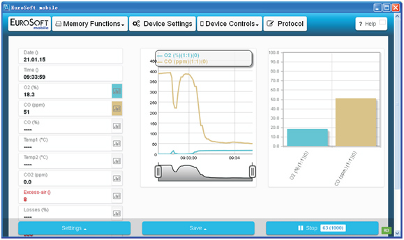 EuroSoft mobile 軟件適用于煙氣分析儀器、電子壓力計 S4600 ST、風速儀 BlueAir ST 與 PC 端或智能手機之間的連接通訊。通過免費的 Eurosoft Mobile 軟件 , 用戶可以方便的使用電腦、Pad 或手機遠程操作儀器,查看、編輯測量數(shù)據(jù)等。