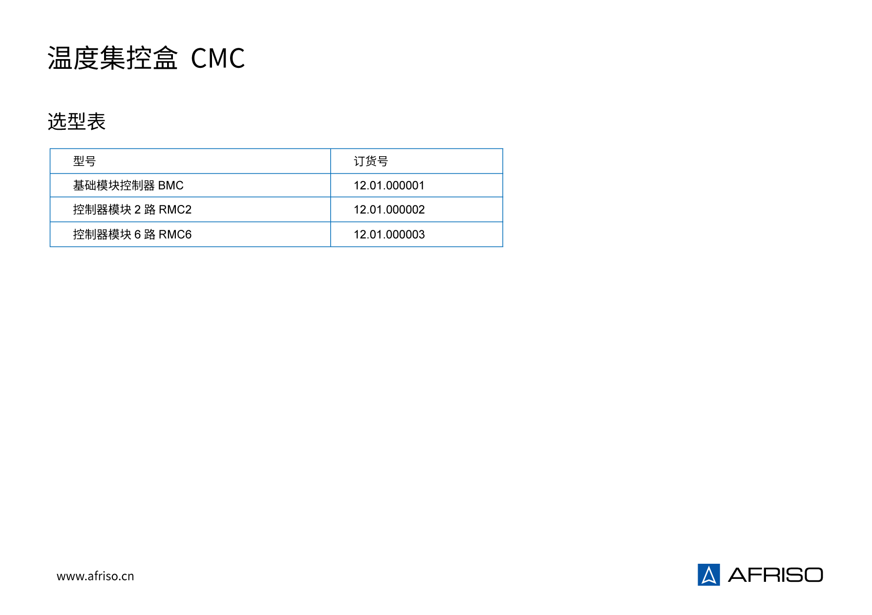CMC 的基本配置包含一個基礎模塊 BMC 、至少一個集控器模塊RMC2(2 路模塊) 或 RMC6(6 路模塊)。 基礎模塊 BMC 功能:供電;循環泵及熱源的控制 集控器模塊RMC2/RMC6 功能:通過連接房間溫控器和電熱執行器控制集水器支路的啟停 |